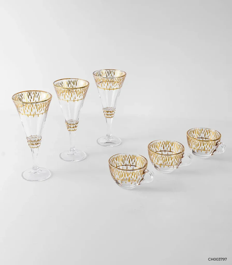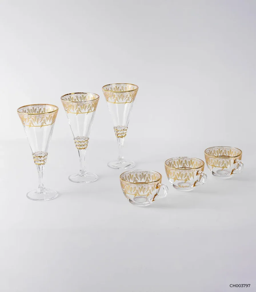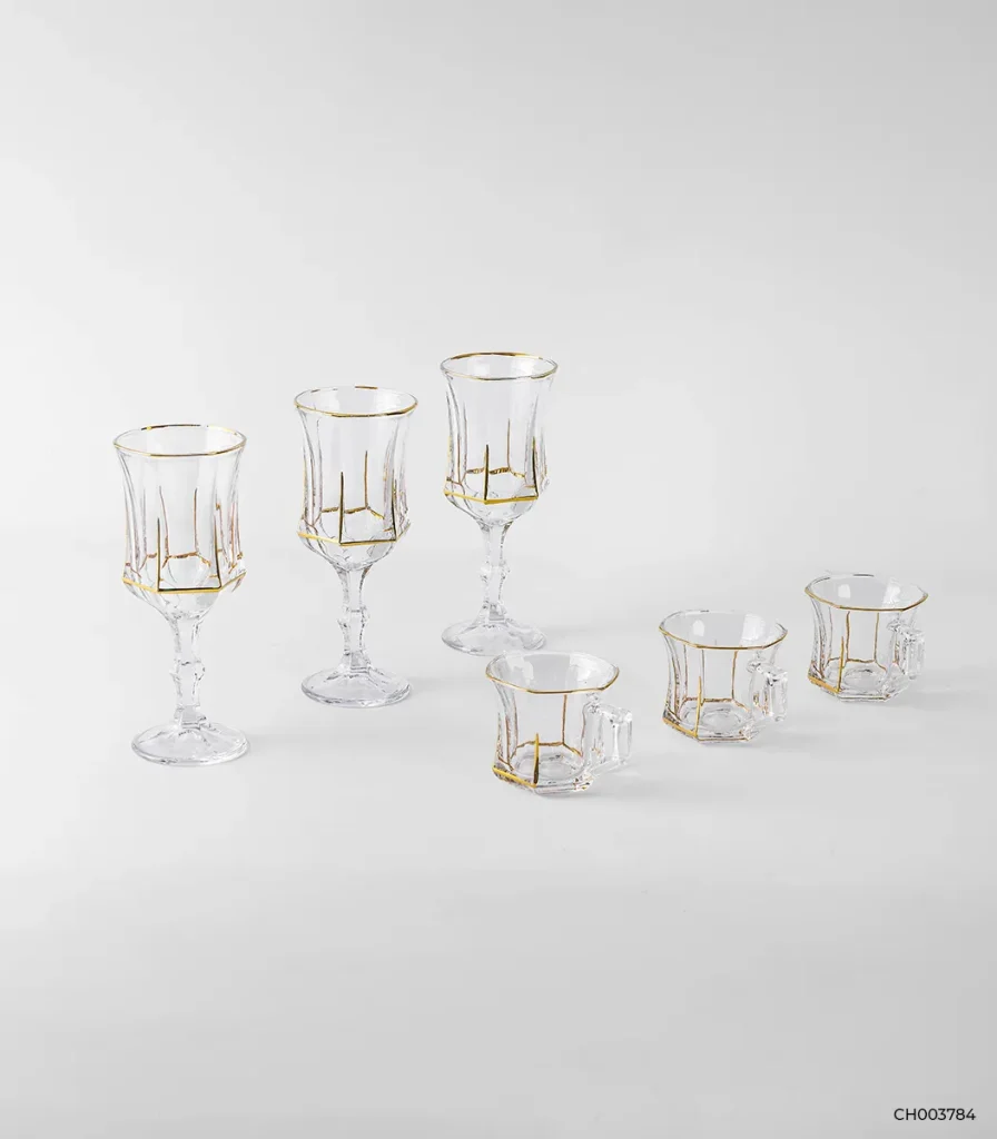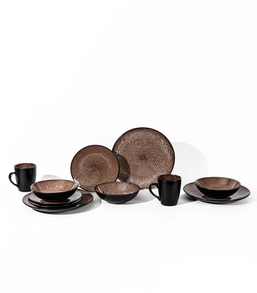 يتضمن الطقم جميع القطع التي تحتاجها لتقديم وجباتك بشكل أنيق ، مثل الأطباق المسطحة والعميقة، وأطباق السلطات، وأكواب الشاي والقهوة، وأطباق الحلوى.