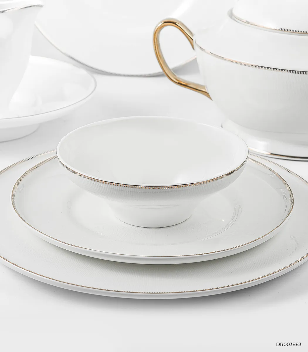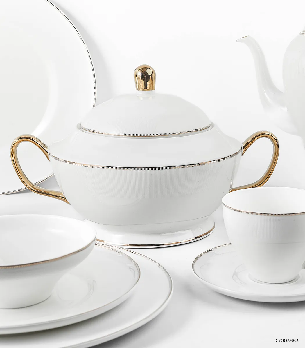 - طقم متكامل (113 قطعة): يوفر تشكيلة واسعة من الأطباق والأدوات لتغطية جميع احتياجات الضيافة لـ 12 شخصًا وأكثر، بما في ذلك أطباق تقديم رئيسية وأطباق غرف ومجموعات شاي وقهوة.