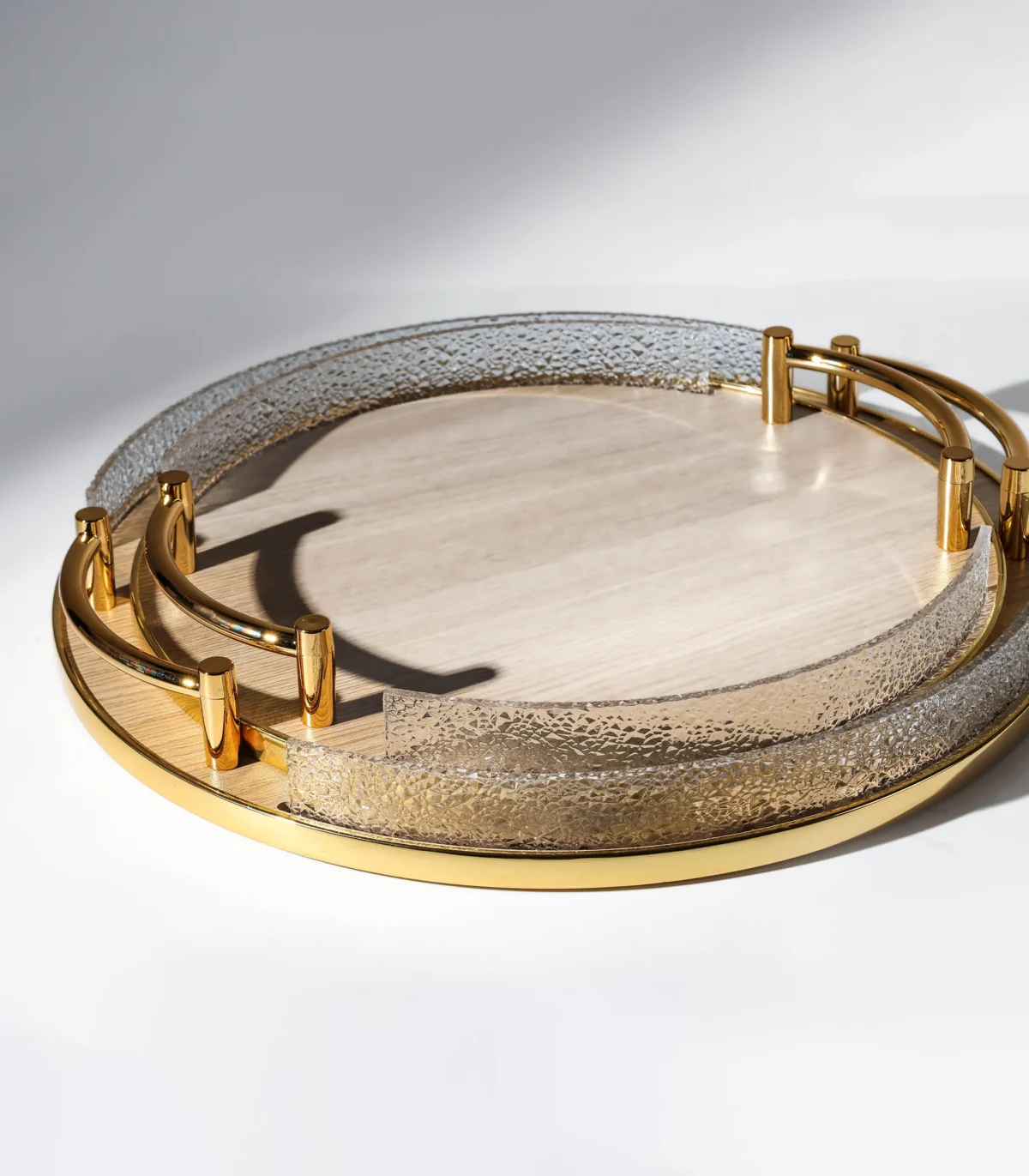 - أيدي ذهبية أنيقة: تضفي الأيدي الذهبية لمسة من الفخامة والرقي، وتوفر قبضة مريحة لحمل الصواني.