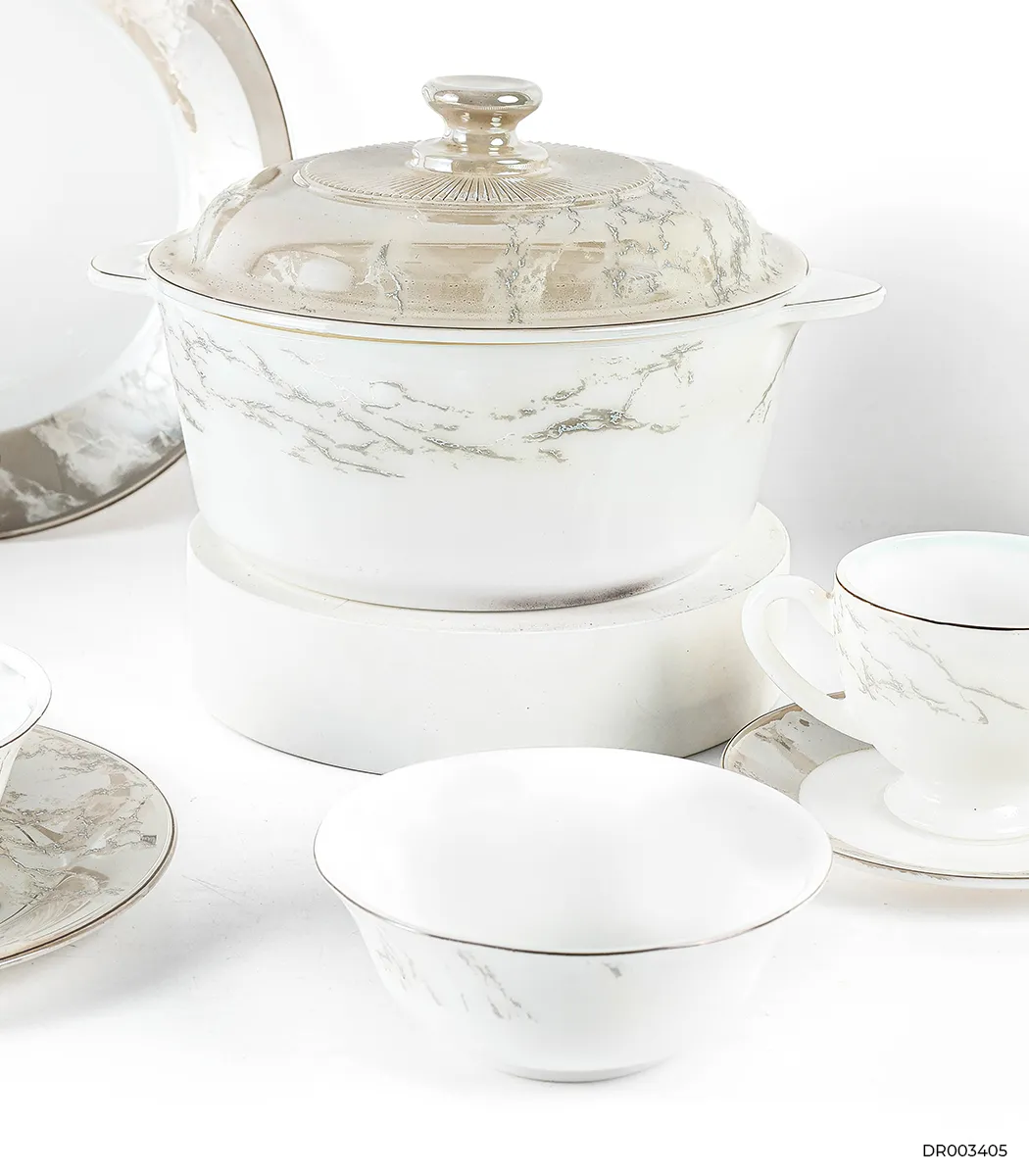 طقم عشاء اركوبال فاخر وعصري، بتصميم مدور أنيق وجذابة، يضفي لمسة من الرقي والجمال على مائدتك. يتكون الطقم من 58 قطعة، مما يجعله مثاليًا لاستضافة العائلات الكبيرة والضيوف في المناسبات المختلفة. الأركوبال معروف بخفته ومتانته ومقاومته للكسر والتشقق، مما يجعله خيارًا عمليًا وأنيقًا في آن واحد.