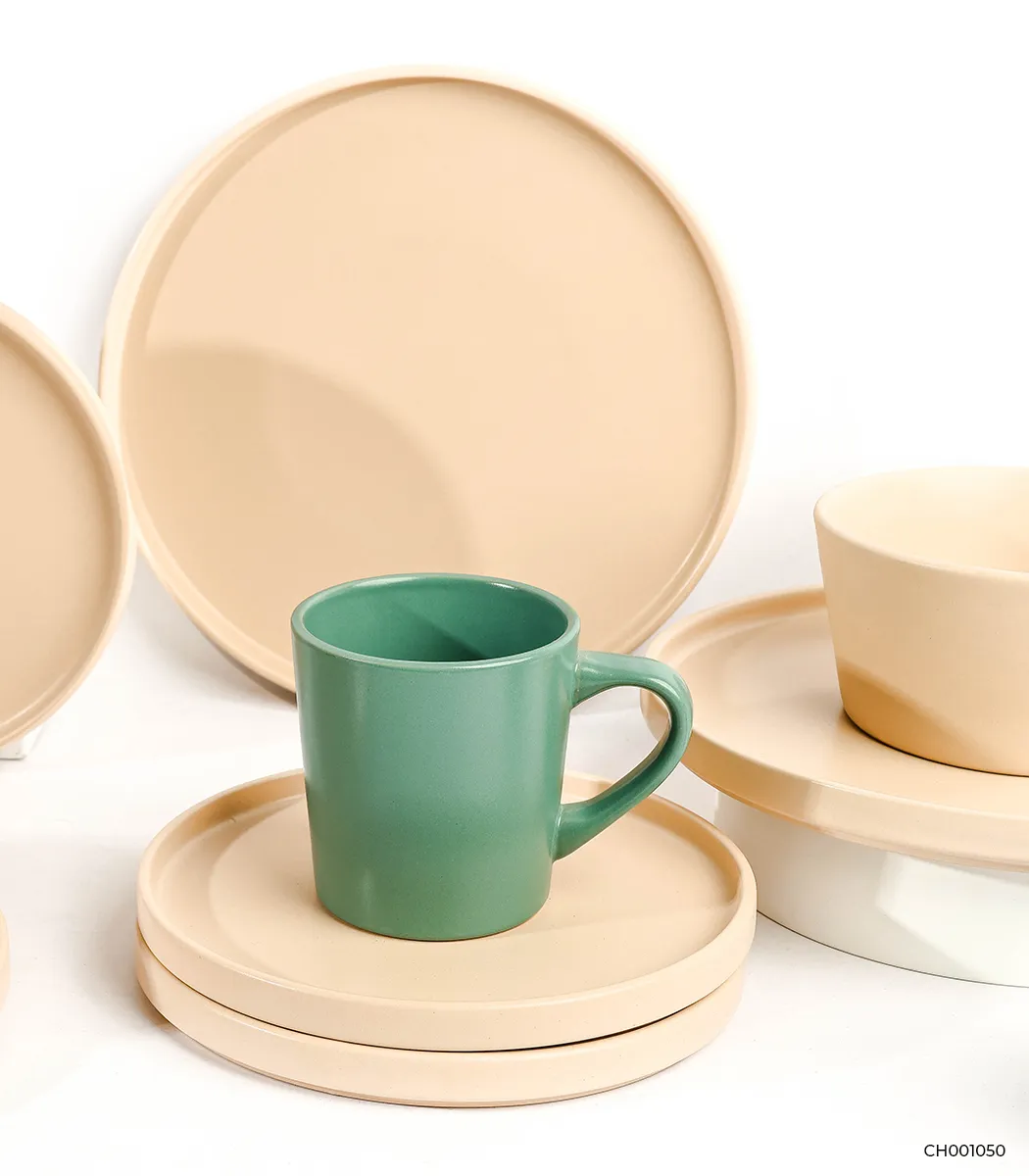 طقم عشاء مدور 16 ق  ميكس سادة