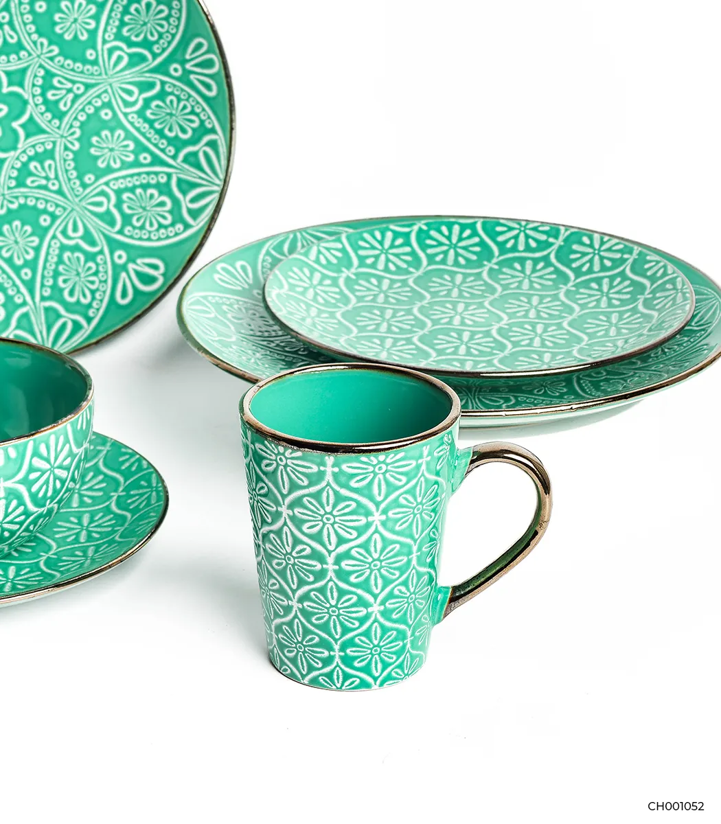 طقم عشاء مدور 16 ق لامع بارز اشكال